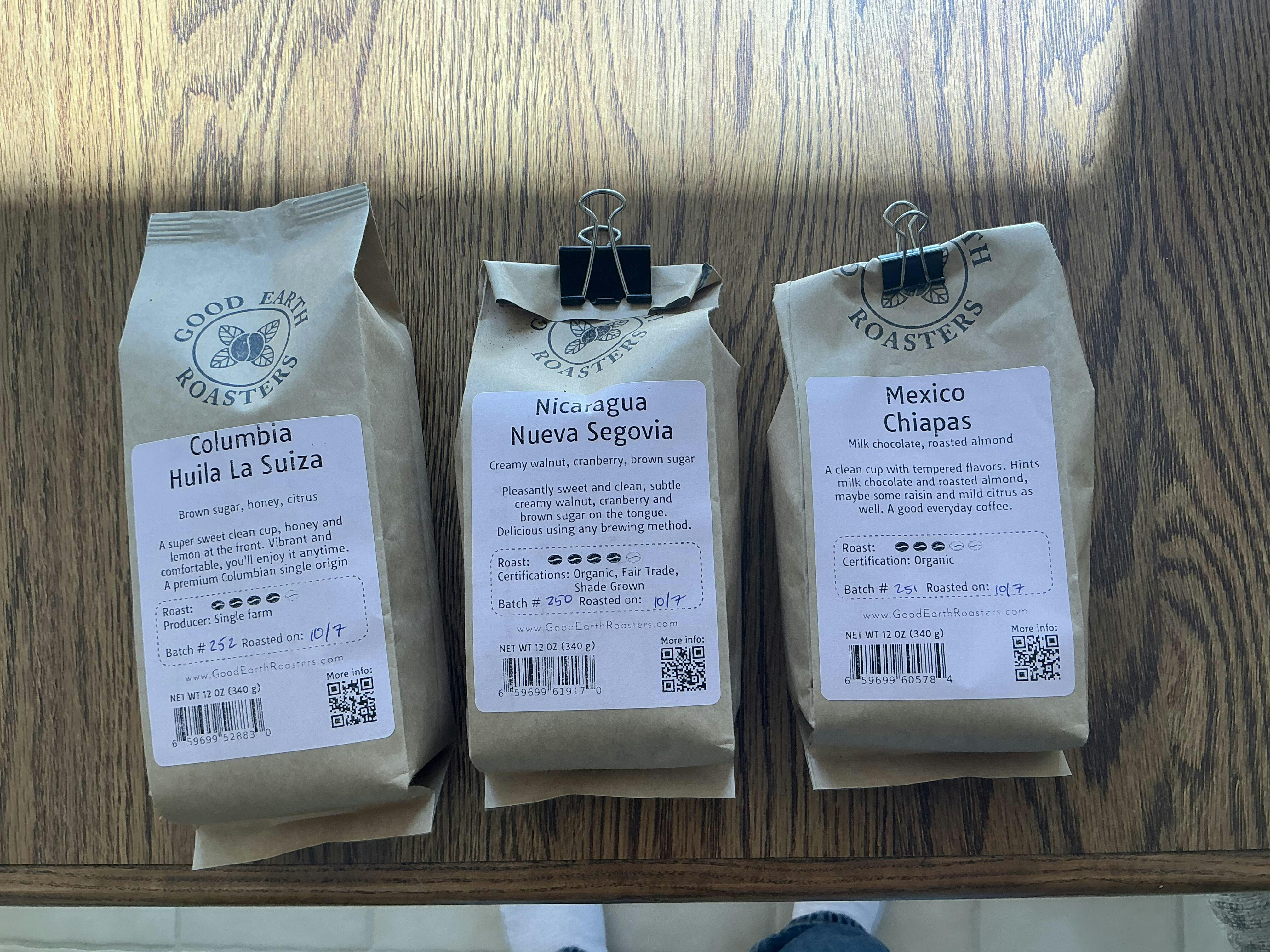Found a new great place to purchase fresh roast coffee that has not been roasted (burned) way beyond the second crack. This blend gives a wonderful cup (or 2) to start the day. We also tried the Columbian Huila La Suiza and the Mexico Chiapas. Both of these were on par with the Nicaragua Nueva but with different regional tastes. Difficult to pick a favorite at this point and there are also other offerings by Good Earth Roasters yet to be sampled. Great coffee with individual roasting and also quick shipping. Highly recommended!